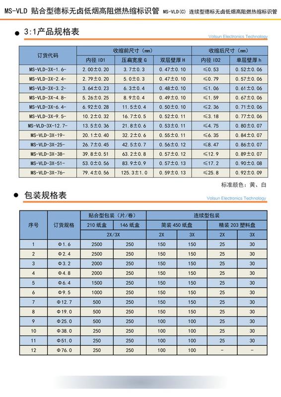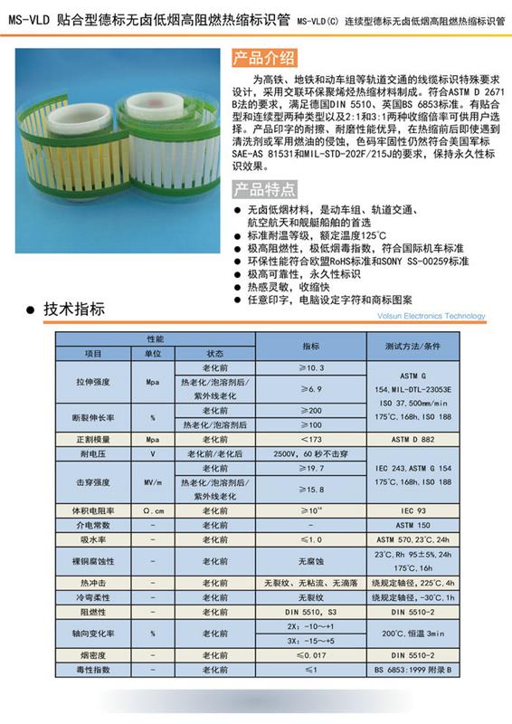 MS-VLD 德标无卤低烟高阻燃热缩标识管