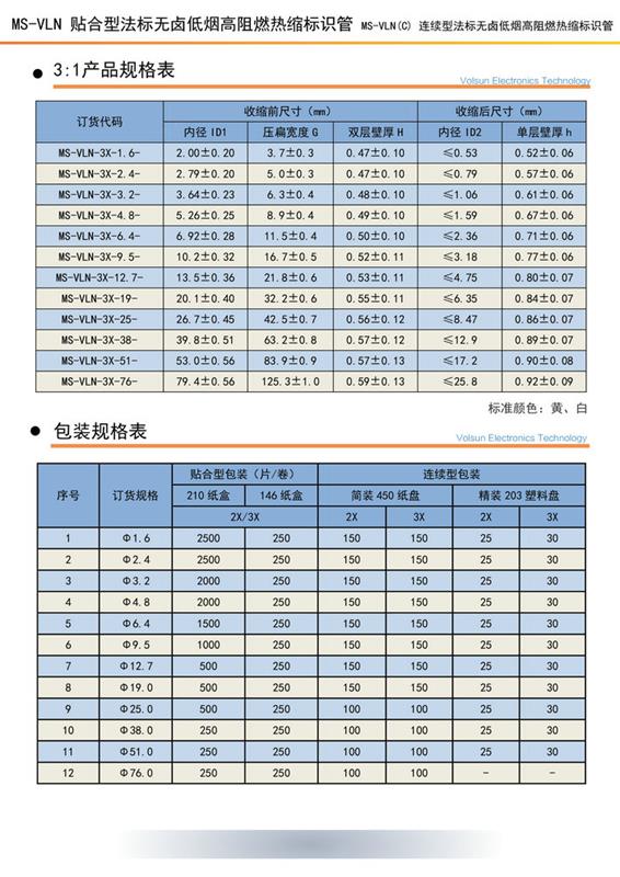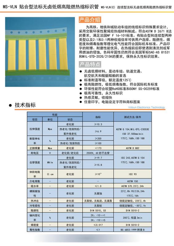 MS-VLN 法标无卤低烟高阻燃热缩标识管