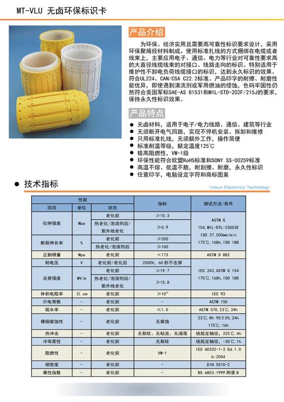 MT-VLU 无卤环保标识卡